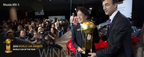마쯔다 MX-5 미아타 RF. 사진=마쯔다마쯔다 MX-5는 2016 올해의 월드카 상에서 함께 탑3 파이널리스트에 든 아우디 ‘A4’와 메르세데스벤츠 ‘GLC’ SUV라는 녹록치 않은 후보들을 누르고 WCORY로 선정됐을 뿐만 아니라, 하나의 모델이 두 개 부문에서 동시에 수상은 한 것 또한 최초라고 외신들은 보도했다.