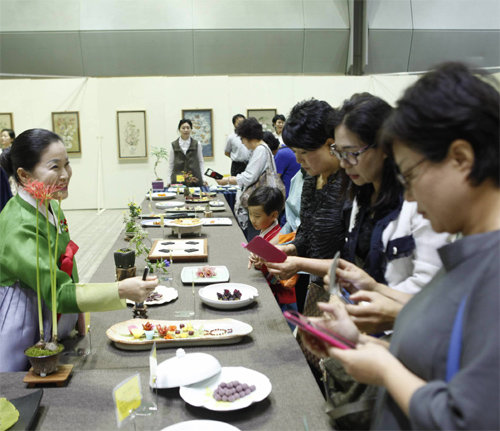 지난해 열린 명원세계차박람회에서 참가자들이 전문가로부터 전통 다도에 어울리는 간단한 음식에 대해 설명을 듣고 있다. 명원문화재단 제공다음 달 20일부터 23일까지 서울 강남구 코엑스에서 ‘2016 명원세계차박람회’가 열린다. 박람회에는 1000여 명의 차 생산자와 다기 업체 관계자, 차 전문가 등이 참여한다.