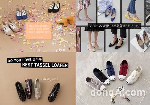 이번 봄 개편을 통해 선보인 미들굽 높이의 팝한 컬러감 ‘아젤리아 펌프스힐’, 여심을 자극하는 무드레시피 ‘에일린 스트랩힐’, 1만5000족 후기가 자신 있는 슈마루 메이드 ‘헤이든 테슬로퍼’, 인기행진 커플슈즈 ‘듀스 커플 스니커즈’ 등이다.