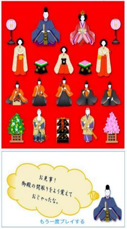 게임은 간단하다. 플레이어가 인형 12개의 올바른 위치를 찾아 4단 단상에 올리면 된다. 정답이면 ‘퐁’하는 소리가 난다.