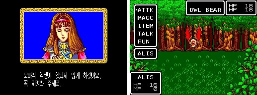 꿀딴지곰 : 당시엔 그런 거 따지지도 않았죠. 한글화해주면 그저 좋았던 시기인데 자간을 따지시다니요 ^^ 자.. 다음 작품은 초창기 메가드라이브에 귀했던 RPG! 그래픽과 파격적인 오토배틀 시스템 등으로 유명한 판타지 스타 시리즈입니다!
