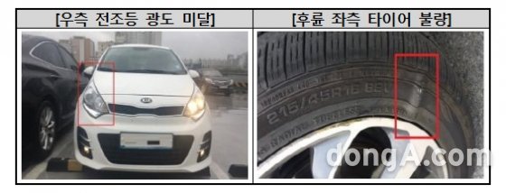 소비자원이 국내 주요 카셰어링 4개 업체 30대 차량의 안전성을 점검한 결과, 7대(23.3%)가 1개 이상 항목에서 부적합한 것으로 나타났다. 특히, 5대 차량은 주행거리가 5만km 이하로 길지 않음에도 부적합 판정을 받았다. 이는 불특정 다수가 이용하는 카셰어링의 특성상 차량 고장, 관리·정비 불량 등이 발생하기 쉽기 때문인 것으로 판단된다.