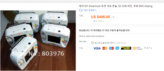 (이러한 식으로 판매도 진행중. 다만 너무 뭉툭해서 휴대용으로의 가치가 있는지는 체크해야할 듯)(출처=게임동아)꿀딴지곰 : 혹시나 판매사이트가 궁금하신 분을 위해 주소도 남겨보도록 하죠. https://ko.aliexpress.com/store/product/Reserving-DIY-DreamCast-Pocket-Game-Console-SD-reinforce-version-Free-EMS-shiping/803976_584088954.html 이쪽입니다.