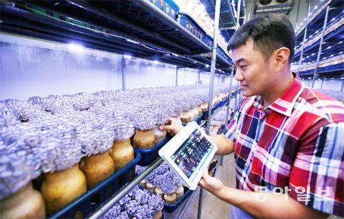 sajinman@donga.com버섯 재배는 대부분 시설 자동화가 이뤄졌지만 온도와 습도 조절 등은 직접 농장에서 일일이 챙겨야 한다. 더 체계적이고 효율적인 방식을 찾던 김 대표는 농림축산식품부의 지원을 받아 지난해 5월 스마트팜을 도입했다.