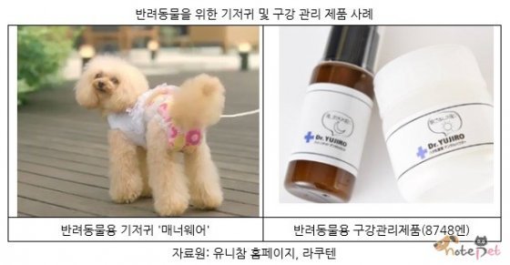 특히 일본 기저귀 제품 시장의 선도기업인 ‘유니참’이 요실금을 앓고 있지만 외부 활동이 가능한 반려동물용으로 만든 기저귀 ‘매너웨어(Manner Wear)’는 지난 2014년 출시된 후, 소비자로부터 큰 호응을 얻고 있다.