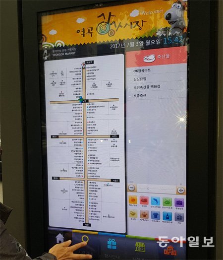고객은 경기 부천시 역곡상상시장 입구에 설치된 터치스크린에서 필요한 상품과 매장의 위치를 찾을 수 있다. 부천=정세진 기자 mint4a@donga.com“이제 마지막 소원은 주차장을 짓는 겁니다.”