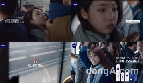 니베아는 겨울철 데오드란트가 필요한 순간을 직장인 공감 스토리로 담은 ‘체감온도를 케어하다’ 캠페인 영상을 공개했다. 이 영상은 직장인의 버거운 일상을 추운 날씨에 만원인 대중교통 안에서 느끼는 덥고 답답한 상황으로 재치 있게 표현했다. 니베아 데오드란트가 겨울철 높아지는 체감온도를 케어하고 자신감을 준다는 메시지를 담고 있다. 영상은 니베아 공식 페이스북과 유투브에서 확인할 수 있다.