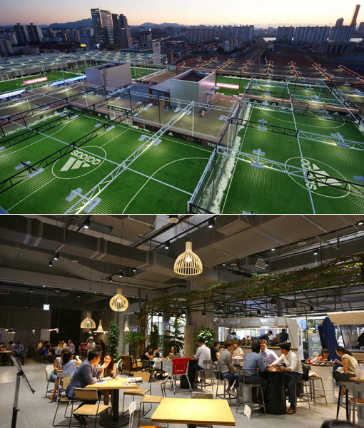 서울 용산 소재 아이파크몰은 풋살타운으로 승부를 걸었다. 새롭게 증축된 옥상공간에 풋살경기장 5개를 신축해 기존 야외 구장 2개, 실내구장 1개와 함께 총 8개의 풋살장을 갖췄다. ‘맨체스터 유나이티드’, ‘유벤투스’, ‘레알 마드리드’, ‘바이에른 뮌헨’ 등 유럽 명문 구단 경기장을 모티브로 디자인한 것이 특징. 각 구장의 특징을 형상화한 조형물을 경기장 곳곳에 설치해 마치 축구 본고장 유럽에 온 듯한 분위기를 자아냈다.