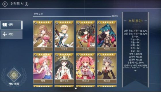 여기에 캐릭터 카드를 수집해서 캐릭터의 추가 능력치를 올려주는 신탁 시스템이 존재하기 때문에, 어떤 신탁 조합을 선택했는가에 따라 같은 캐릭터라도 능력치가 달라진다.
