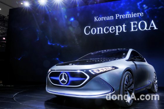 EQ 브랜드 최초의 컴팩트 사이즈 콘셉트카 ‘콘셉트 EQA’는 전기 구동화를 향한 메르세데스벤츠의 비전을 명확히 보여주는 모델이다. 콘셉트 EQA는 기존 모던 럭셔리(Modern Luxury)를 진보한 럭셔리(Progressive Luxury)로 새롭게 발전시켰다. 아름다운 비례, 매끄러운 차체 표면, 첨단 기술을 활용한 블랙 패널을 갖추고 있다. 주행 모드에 따라 라디에이터 그릴 디스플레이 형태도 바꿀 수 있다. 또한 60kWh 이상 배터리를 탑재해 최대 400km 이상 주행이 가능하고, 두 개의 전기모터는 최고 출력 270마력, 최대 토크 51.0kg.m를 발휘하며 정지 상태에서 시속 100km까지 5초 이내에 도달한다.
