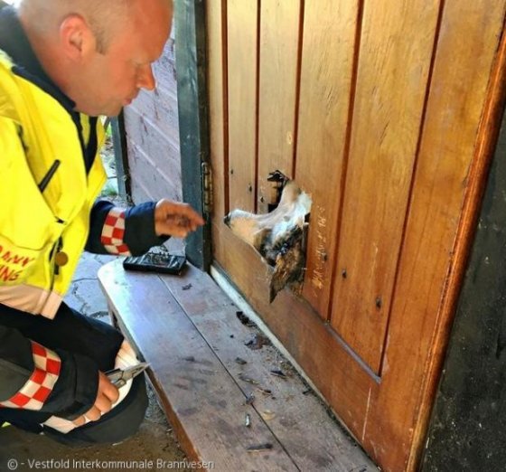 견주 실예 헤룹 유벳은 “처음에는 벌어진 일이 물리적으로 가능한지 믿을 수 없었다”며 “그러나 확실히 가능했다”고 당시를 떠올렸다. 견주는 놀라서 소방서에 신고했고, 소방관들은 현장에 출동해서 안타깝게 여긴 동시에 실소를 금치 못했다.