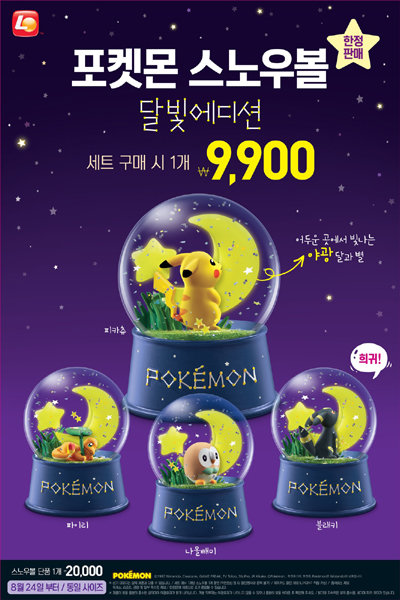 롯데리아가 3월 출시해 하루 만에 완판을 기록했던 포켓몬 스노우볼 ‘벚꽃 에디션’에 이어 24일 포켓몬 스노우볼 ‘달빛 에디션’(사진)을 판매한다. 롯데리아 포켓몬 스노우볼 ‘달빛 에디션’은 포켓몬 캐릭터 4종(피카츄, 파이리, 나몰빼미, 블래키)으로 구성했다. 야광으로 빛나는 달과 흔들면 입자가 퍼졌다가 떨어지는 글리터를 별로 표현한 것이 특징이다. 롯데리아 스노우볼 ‘달빛 에디션’은 24일부터 세트메뉴 주문 시 1개의 스노우볼을 9900원에, 단품 구매 시 2만원에 판매한다.