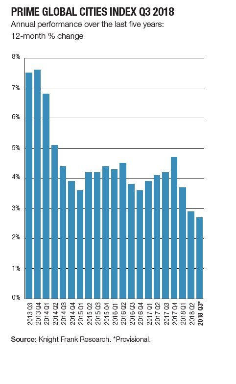 보고서는 “프라임 글로벌 도시지수는 금융비용의 상승, 부동산시장 규제의 도입, 브렉시트를 둘러싼 불확실성 등으로 성장이 둔화되고 있다”고 설명했다.