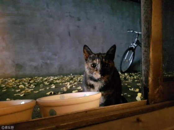 고양이 가족은 매일 새벽 1시경 다섯 가족이 함께 몰려와 식사를 한 뒤 돌아간다. 처음 만났던 길고양이가 애교쟁이였던 것과 달리 녀석들은 경계가 심해 사진 찍는 것조차도 쉽게 허락하지 않는다는 게 도완 씨 설명이다.