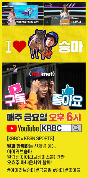 유튜브를 통해 현재까지 두 편이 공개된 ‘아이러브승마’는 매주 금요일 오후 6시 ‘KRBC 경마방송’ 및 ‘KBSN SPORTS’ 유튜브 채널을 통해 추가 공개될 예정이다.