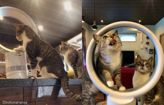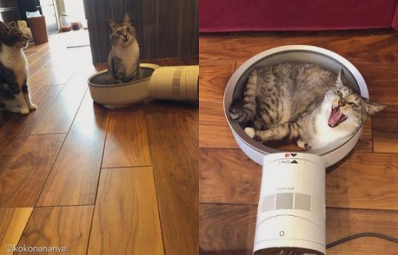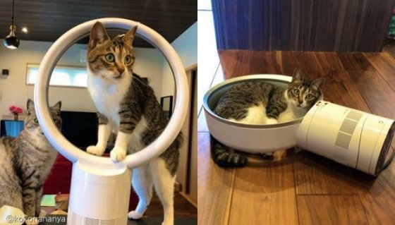 [노트펫] 빙글빙글 돌아가는 날개만 없으면 될 줄 알고 날개 없는 선풍기를 구매한 집사는 고양이들 때문에 또 다른 난관에 부딪혔다.