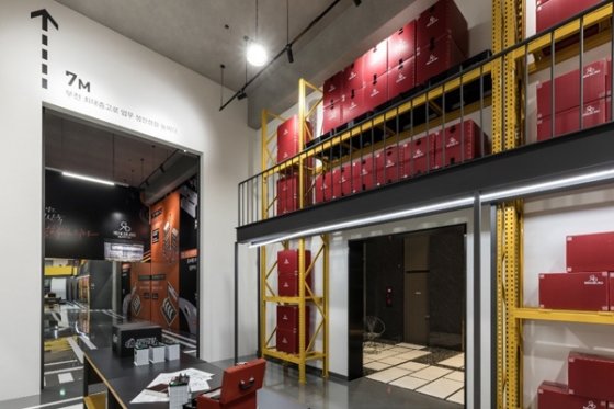 레노부르크 부천 모델하우스(세대 내 높은 층고). 대덕강업 제공지식산업센터 법정주차대수 대비 약 191%의 넓은 주차공간을 확보한 점도 돋보인다. 전 호실에 개별 주차장을 제공했고, 호실 바로 앞에 2대에서 4대까지 주차 할 수 있다.