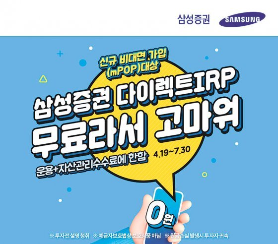 삼성증권이 국내 최초로 개인형 퇴직연금(IRP) 계좌 수수료를 전액 면제해주는 ‘삼성증권 다이렉트 IRP’를 선보였다. 이를 기념해 7월 말까지 이벤트도 진행한다.