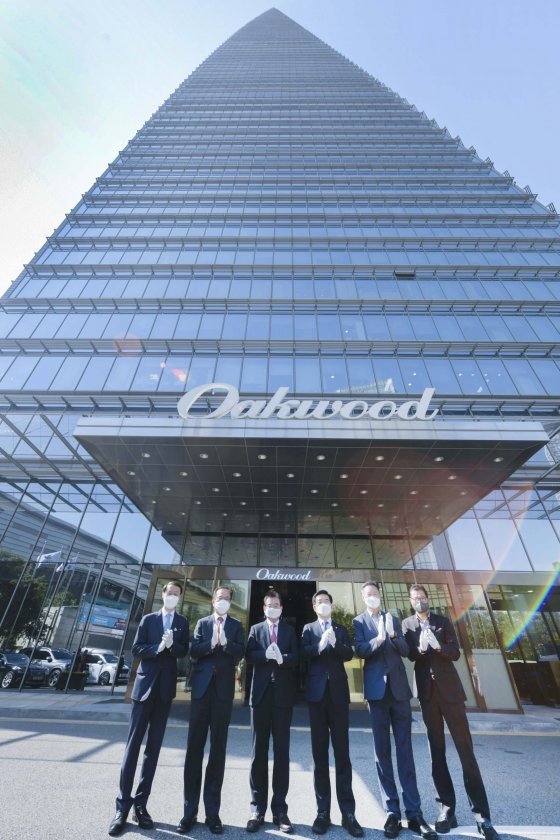 인천 송도국제도시에 있는 ‘오크우드 프리미어 인천’이 22일 한국관광협회중앙회가 시행하는 호텔 등급심사에서 가족호텔로는 국내 최초로 5성 등급을 획득해 현판식을 열었다. 2014년 7월 문을 연 오크우드 프리미어 인천은 송도국제도시의 랜드마크인 포스코타워 상층부(36~65층)에 들어섰다. 가족호텔은 자유롭게 취사가 가능한 일종의 레지던스호텔이다.