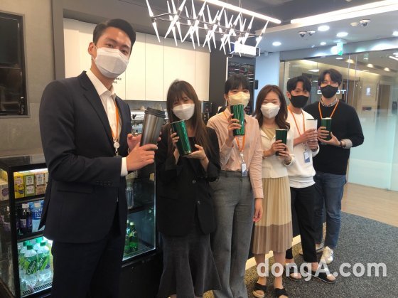 실제로 이번 캠페인 시행 후 직원 1인당 하루 평균 일회용컵 사용량이 약 3.1개에서 0.6개로 80% 이상 줄었다.