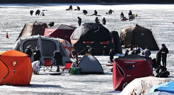 알록달록 텐트에 모인 강태공들…빙어낚시, 입춘에도 계속 [청계천 옆 사진관]