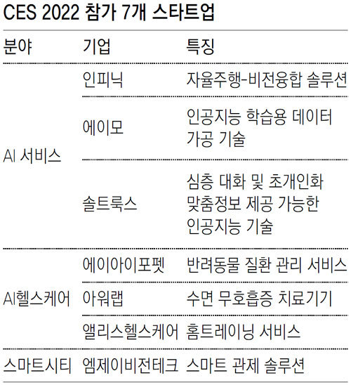 AI 솔루션 기업 인피닉은 인공지능 리테일 솔루션 ‘AI카운터(AI counter)’로, 에이아이포펫은 반려동물 질환 관리 서비스 ‘티티케어(TTcare)’로 CES 2022 혁신상의 영예를 안았다.