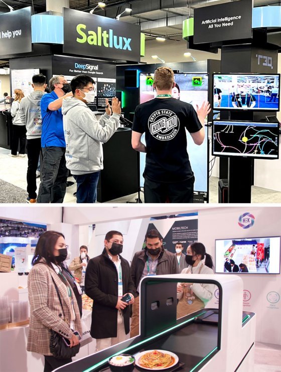 AI 전문 기업으로 이미 글로벌 법인 설립을 통해 세계무대에 도전하고 있는 에이모와 솔트룩스는 미국 현지 관람객들의 호평을 받았다. 에이모는 AI 학습 데이터 가공에 탁월한 기술을 보유하고 있다. 솔트룩스는 심층 대화 및 초개인화 맞춤 정보 제공이 가능한 AI 개발 기술을 갖고 있다.