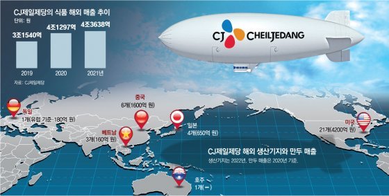 CJ제일제당이 만두를 필두로 고추장, 김, 햇반 등 K푸드의 해외 영토 넓히기에 대대적으로 나서고 있다. 연초에 해외 사업을 총괄할 식품성장추진실을 별도로 신설하고 미국 식품·유통사를 두루 거친 전략기획통을 영입했다. 세계 시장에서 K팝 스타인 BTS와 드라마 오징어게임 등 한국 문화가 인기인 점에 힘입어 올해를 글로벌 식품기업으로 거듭나는 ‘제2의 원년’으로 삼겠다는 전략이다.