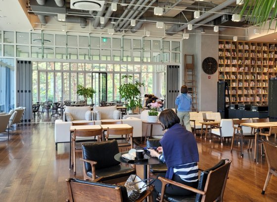 소나무 숲속에 1만3000여 권의 도서를 갖춘 북카페 ‘솔향기 언덕’.실제로 넷플릭스 다큐멘터리 영화 ‘작전명: 서핑’에서는 전쟁에서 살인기계로 활약하다가 몸과 마음에 상처를 입은 퇴역 군인들이 서핑을 통해 외상 후 스트레스 장애(PTSD)를 치유하는 과정이 그려진다. ‘퇴역 군인이 서핑에 빠지면 내일 파도는 어떨지 궁금해하기 시작합니다. 내일 파도를 궁금해하는 사람은 오늘 자살할 생각을 안 하죠. 앞으로 의사들이 처방전을 쓸 땐 약과 함께 서핑수업을 처방할 수도 있습니다’라는 영화 속 대사는 감동을 준다.