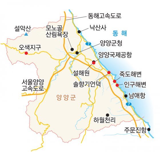 오색그린야드호텔의 노천 온천탕.양양 중광정해수욕장에서 국도 7호선을 건너면 있는 ‘솔향기 언덕’은 소나무 숲속에 자리 잡은 카페에서 책을 읽으면서 힐링할 수 있는 장소다. 한국검인정교과서협회 양양 연수원 안에 있는 북카페는 도서 1만3000여 권을 갖추고 있다. 책을 보며 커피를 마신 후 400m 구간에 이르는 솔밭산책로를 걸으며 향긋한 솔향기를 맡아보길 권한다.