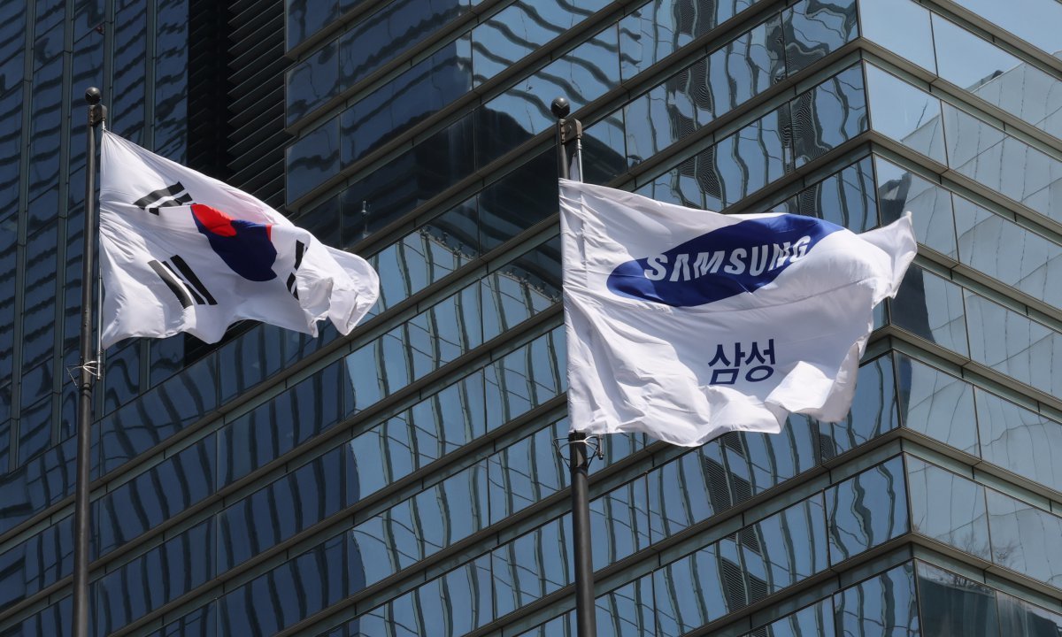 서울 서초구 삼성전자 서초사옥에 삼성 깃발이 바람에 펄럭이고 있다. 뉴스1