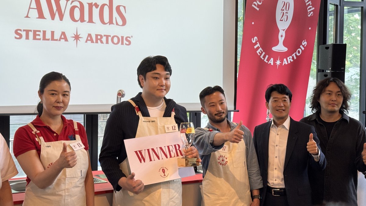 지난 16일 열린 ‘스텔라 아르투아 퍼펙트 서브 어워즈 코리아’에서 우승을 차지한 이장윤 씨와 결선 진출자들이 기념촬영을 하고 있다. 윤우열 기자 cloudancer@donga.com이날 우승은 서울 강남구에서 ‘더블린테라스’를 운영하는 이장윤 씨가 차지했다. 그는 “쟁쟁한 분들과 경쟁한다고 해서 긴장을 많이 했다. 그래도 평소 하던 대로 해서 영광을 거머쥐지 않았나 생각한다”고 소감을 전했다. 이어 “스텔라 아르투아는 다른 주류와는 다르게 해마다 혹은 분기마다 교육을 나온다. 저희는 그걸 최대한 흡수하고, 직원들에게도 전달하려고 노력하고 있다. 직원 모두가 퍼펙트하게 서브하려고 노력 중이다”라고 덧붙였다.