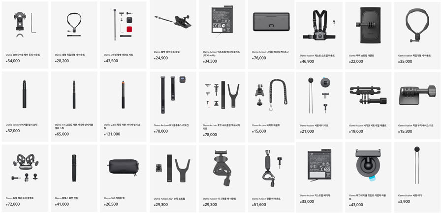 DJI 공식 쇼핑몰에 등록된 오즈모 360 지원 액세서리의 일부 / 출처=IT동아