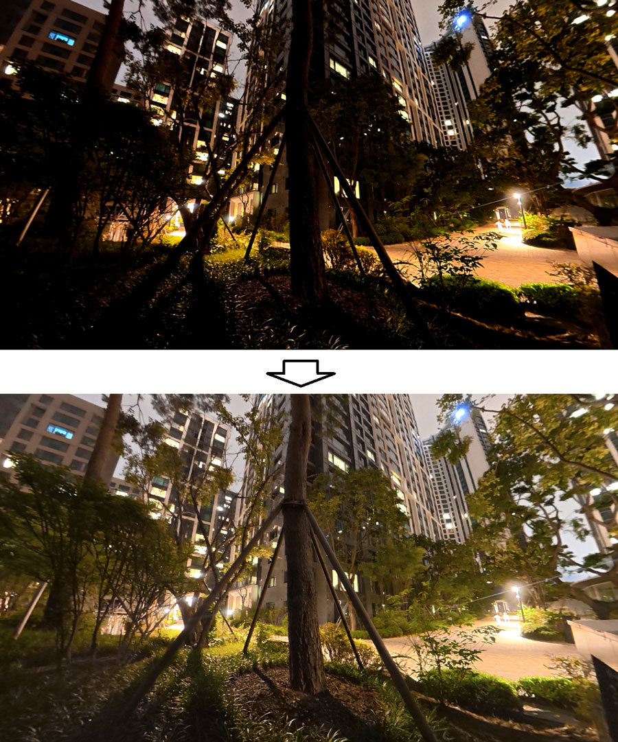 슈퍼 나이트 모드를 활성화하면 야간에도 상당히 밝고 선명한 영상을 찍을 수 있다 / 출처=IT동아
