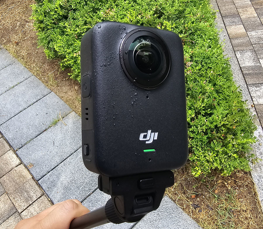 IP68 방수 등급을 지원해 비를 맞거나 얕은 물에 빠뜨려도 촬영을 이어갈 수 있다 / 출처=IT동아본체 양측면의 커버를 열면 충전 및 데이터 전송을 위한 USB 타입-C 포트, 배터리 슬롯, 저장용량 확장용 마이크로SD카드 슬롯 등이 모습을 드러낸다. 각 커버는 방수 처리가 되어있다. 오즈모 360는 IP68 방수 등급을 지원해 최대 수심 10m까지 이용이 가능하다. 야외 촬영 도중에 비가 오거나 강이나 바다에 잠시 빠뜨리는 것 정도로는 문제없이 촬영을 이어갈 수 있다.