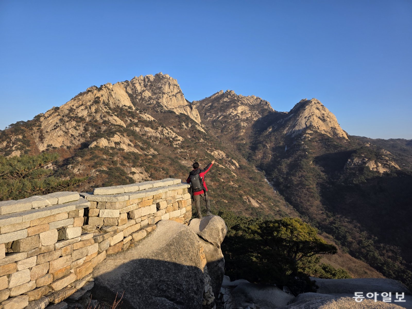 그래서 더욱 재밌는 산행길이다. 의상봉과 용혈봉, 용출봉, 증취봉, 나한봉, 문수봉, 백운대, 원효봉 등 봉우리 주변의 바위산을 오르락내리락하면서 북한산성을 입체적으로 즐길 수 잇는 코스다. 바위산에 박힌 쇠줄과 철제 계단을 오르기도 하고, 산꼭대기까지 굽이굽이 뱀처럼 이어지는 성곽길을 따라 걷는다.
