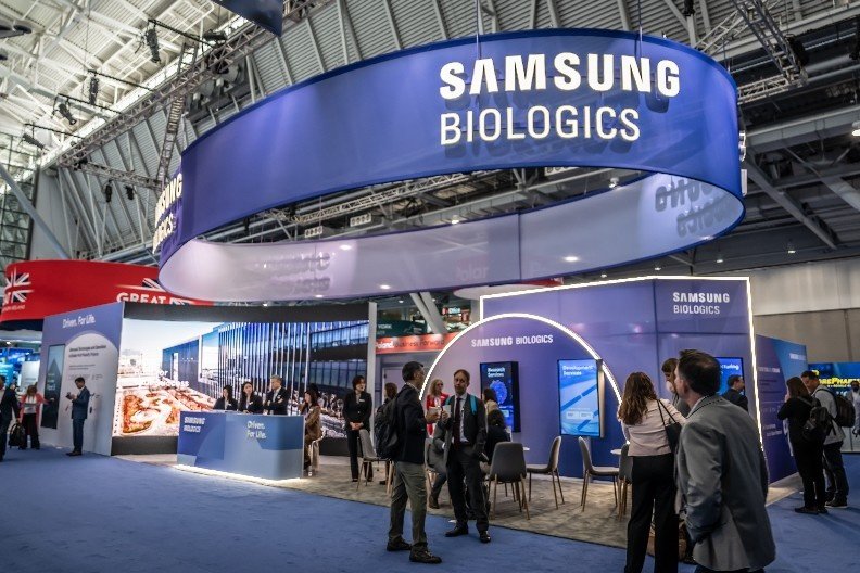 16일(현지 시간) 미국 보스턴에서 열린 ‘바이오 인터내셔널 컨벤션(바이오 USA)’에 참석한 삼성바이오로직스의 부스 전경. 삼성바이오로직스 제공