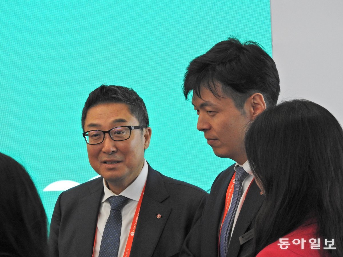 16일(현지 시간) 미국 보스턴에서 열린 ‘바이오 인터내셔널 컨벤션(바이오 USA)’에 참석해 부스를 둘러보고 있는 제임스박 롯데바이오로직스 대표(왼쪽)와 신유열 롯데바이오로직스 글로벌전략실장(오른쪽). 바이오USA 공동취재단국내 바이오 대기업들의 부스는 개막 첫 날부터 비즈니스 미팅으로 분주했다. 삼성바이오로직스는 행사장 입구에 대형 부스를 마련하고 부스 내 약 60석의 미팅 자리를 마련했다. 회사는 행사 기간 동안 100여 건의 미팅이 예정돼 있다고 밝혔다.