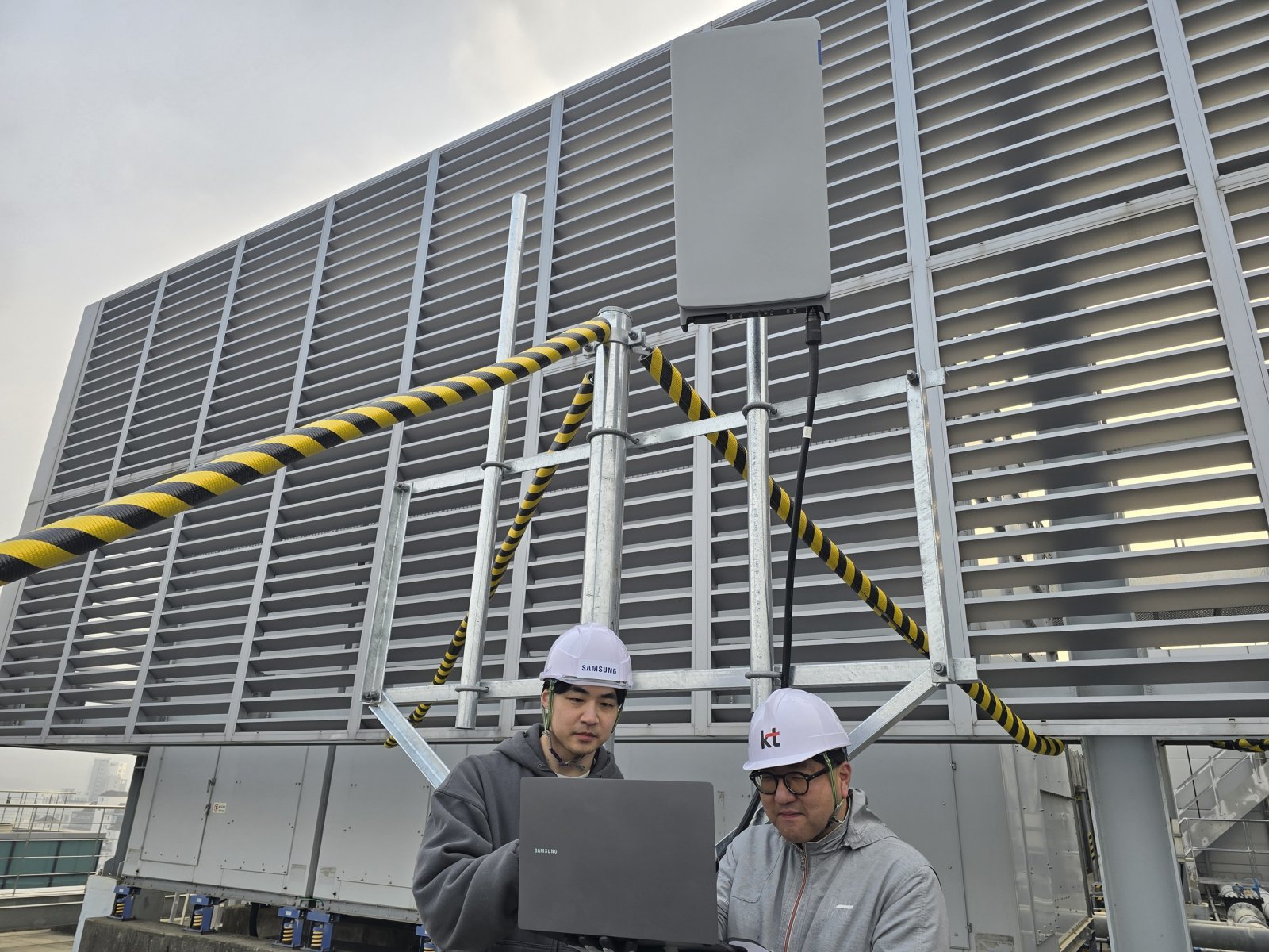 삼성전자 차세대통신연구센터와 KT 연구진이 서울 우면동 소재 삼성전자 서울R&D캠퍼스에서 초고집적 다중 안테나 기술을 검증하고 있다.(삼성전자 제공)