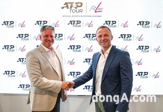 (왼쪽부터)롤프 소르그 피엠인터내셔널 CEO와 마시모 칼벨리 ATP CEO가 업무 협약을 체결하고 있다.피엠인터내셔널(이하 PMI) 건강기능식품 브랜드 ‘피트라인(FitLine)’은 23일 세계 남자 테니스 대회 ATP 투어 공식 파트너로 선정되었다고 밝혔다.