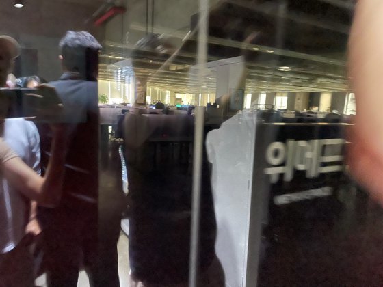 사무실 2~4층 문은 모두 잠겨 있고 내부 전등도 꺼진 상태지만 사람들은 “안에 직원이 있는 것 같다”며 층마다 인원을 나눠 문 앞을 지키고 있다. 2층은 인터파크커머스, 3~4층은 위메프 사무실이다.