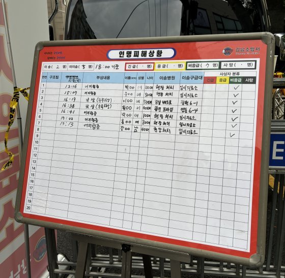 또 오후 4시38분께 낙상으로 손목외상을 입은 40대 여성 황모씨도 구급차에 실려 이송됐다.