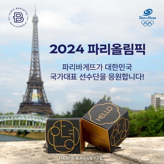 우선 개막에 맞춰 빠리바게뜨는 전국 3400여 개 매장과 브랜드 공식 SNS채널을 통해 ‘팀코리아’ 응원 콘텐츠를 공개하고 고객들과 응원 분위기를 조성한다고 전했다. 올림픽 기간 동안 SNS를 통해 응원 이벤트를 진행하면서 프랑스 파리 현지에서 올림픽의 뜨거운 현장 분위기와 국가대표 선수들의 활약을 생생하게 전할 예정이다.