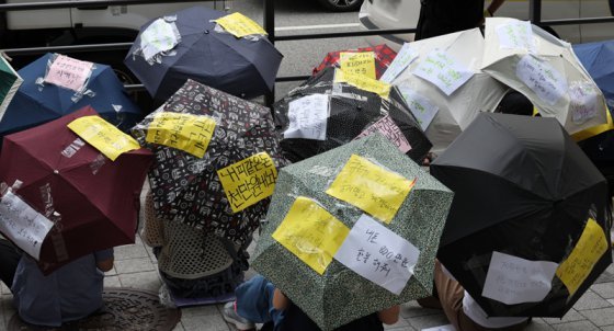 붙인 채 시위를 벌이고 있다. 뉴스1