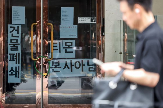 서울 강남구의 티몬이 입주한 건물에 건물폐쇄 및 티몬 사옥이 아니라는 내용의 안내문구가 적혀 있다. 2024.7.29/뉴스130일 법조계에 따르면, 피해 업체를 대리하는 법무법인 사유의 박종모 대표변호사는 이날 오전 서울중앙지검에 구 대표와 류광진 티몬 대표이사를 형법상 컴퓨터사용사기죄, 특정경제범죄가중처벌법상 횡령·배임 혐의로 고소했다. 고소인은 티몬에서 화장용품을 판매하던 업체 측으로 이번 정산 지연 사태로 2억 원이 넘는 판매 대금을 받지 못했다고 주장한 것으로 전해졌다.