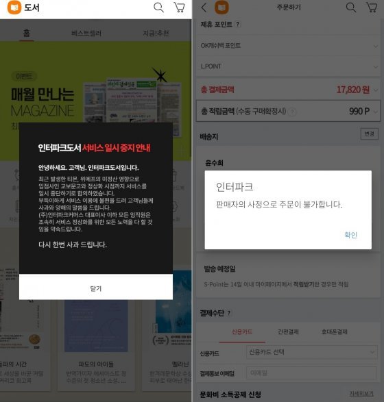 ‘티메프 發’ 인터파크도서, 서비스 중지…“교보문고 판매 중단”