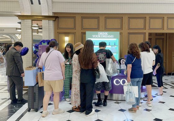 사진제공=코자아수면음료 코자아가 지난 26일부터 신세계백화점 강남점 식품관 앞에서 팝업스토어를 운영중이라고 밝혔다. 코자아는 화사한 보라색 매대로 신세계백화점 방문객들의 시선을 사로잡고 있다.