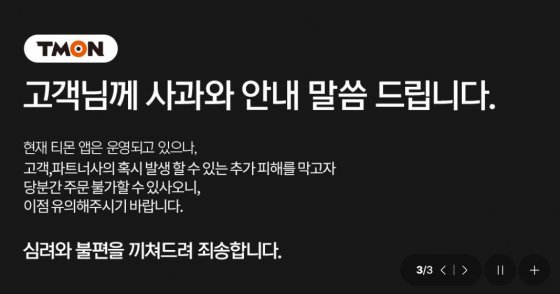 티몬 “추가 피해 막고자 당분간 주문 불가할 수 있어” 공지