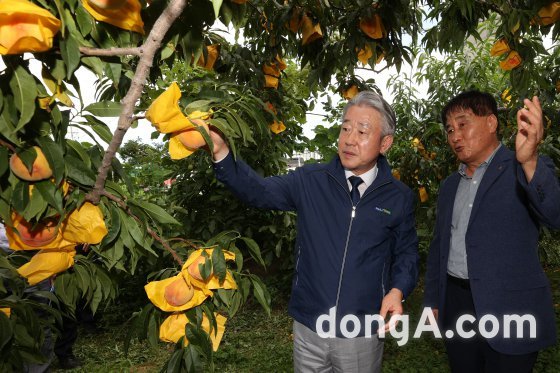 강호동 농협중앙회장, 강원도 배추·복숭아 재배농가 현장 방문