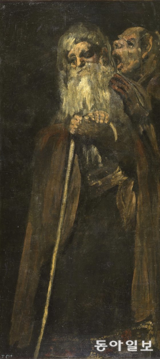 ‘검은 그림’ 연작 중 ‘두 노인’(Two Old Men). ©Museo Nacional del Prado정확한 지적이에요. 검은 그림은 일반적이고 보편적인 의미를 갖고 있어요. 고야가 ‘카프리초스’ 판화를 위해 만든 드로잉 중에 ‘보편적 언어(Ydioma Universal, Universal Language)’라는 작품이 있다는 것 아시나요?